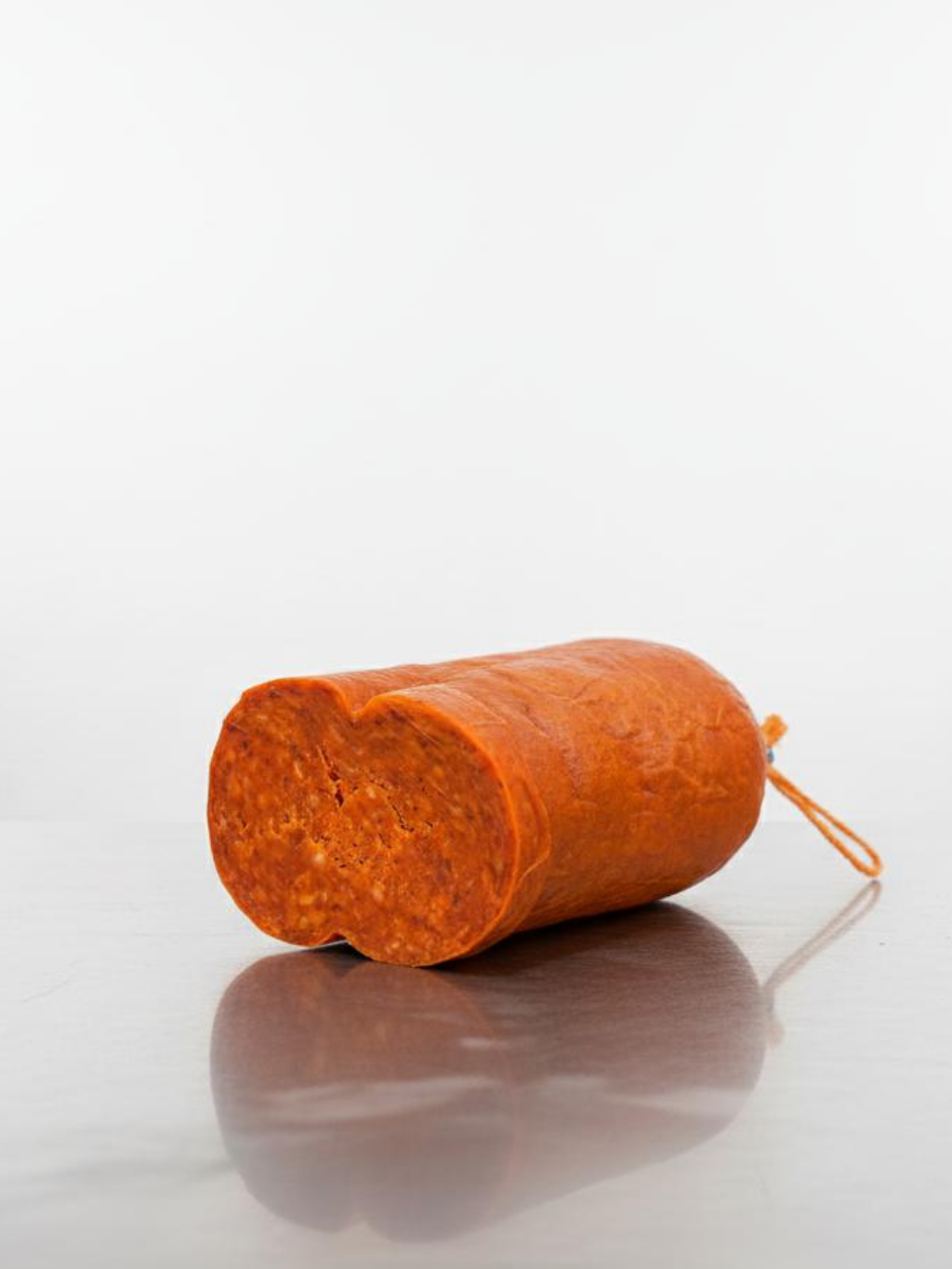 Sobrasada de Mallorca is a soft, spreadable cured sausage from Mallorca, Spain, made with ground pork, paprika, and spices. It has a rich, slightly spicy, smoky flavor and smooth texture. Perfect on bread or as a flavorful cooking ingredient.