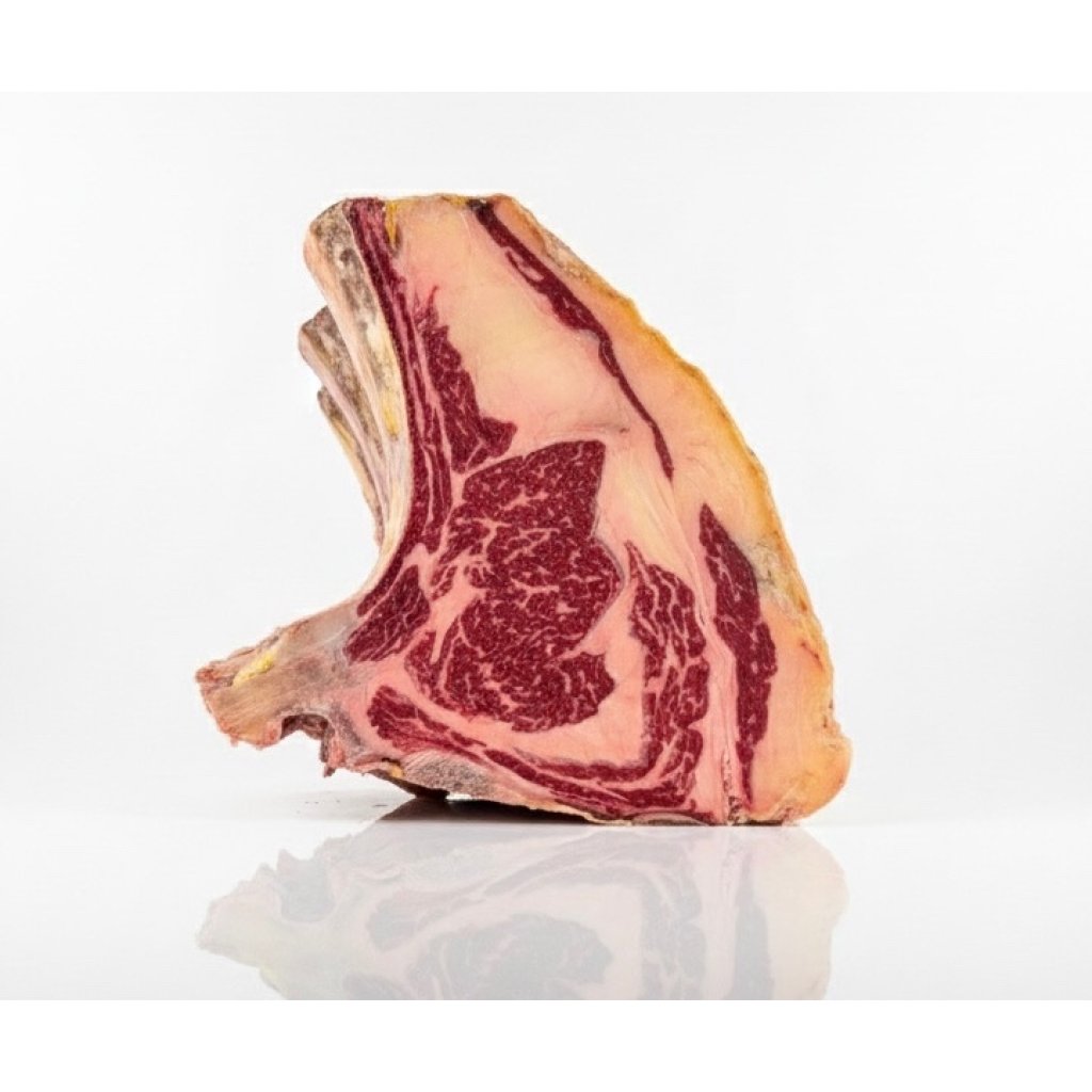 Our commitment to superior quality is evident in the meticulous dry-aging process. For over 60 days, the beef is carefully monitored in a temperature and humidity-controlled environment, transforming it into a luxurious delicacy.